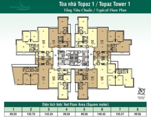Toà Topaz 1: cao 37 tầng, số sàn căn hộ : 8 căn.